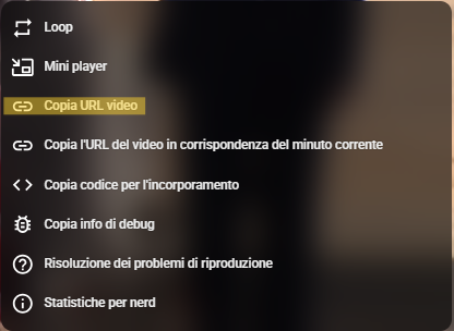 Per prima cosa, rechiamoci su YouTube e copiamo l’URL del video che ci interessa. Per farlo ci sono due modi: copiare il link che compare nella barra in alto del browser oppure fare clic con il tasto destro sul video e selezionare l’opzione per copiare l’indirizzo URL.