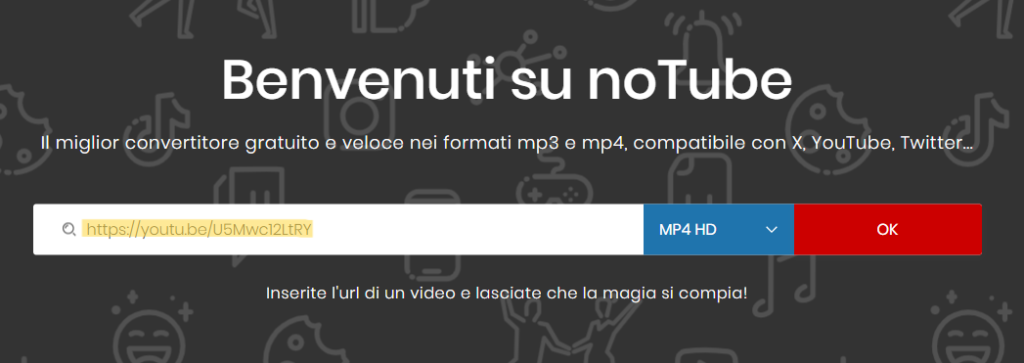 A questo punto rechiamoci su Notube e incolliamo il link all’interno della barra di ricerca. Una volta inserito l’URL, dovrebbe comparire come mostrato in foto.